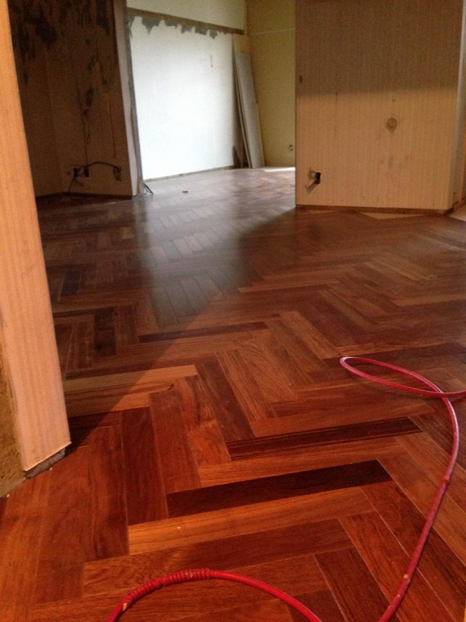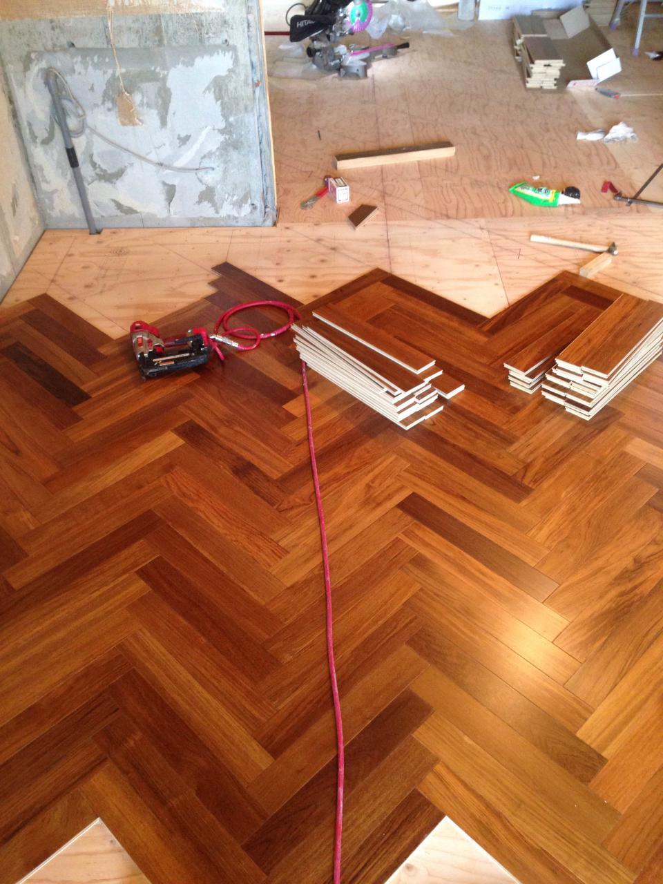 このフロアーは魚の骨のような貼り方で貼っていきます(^◇^)